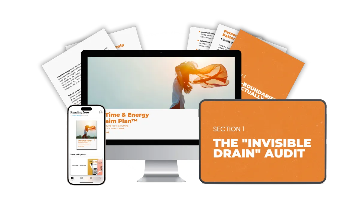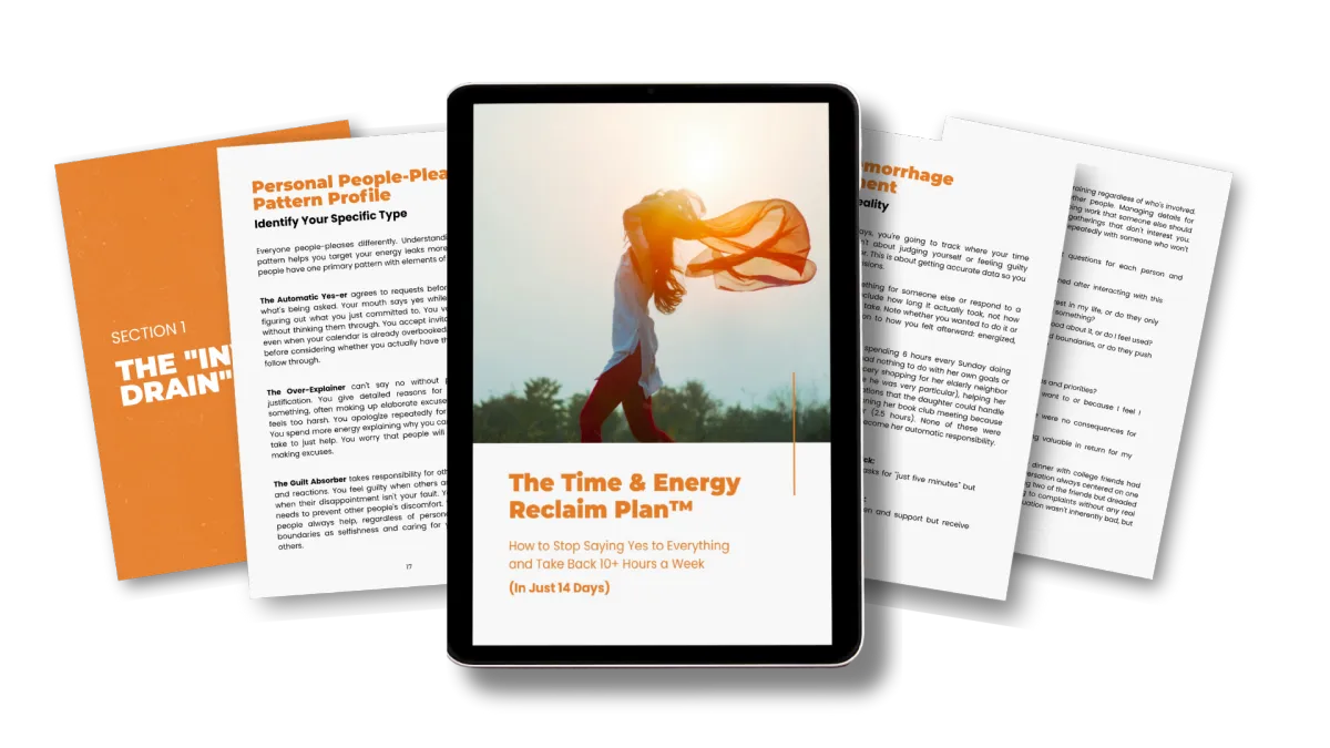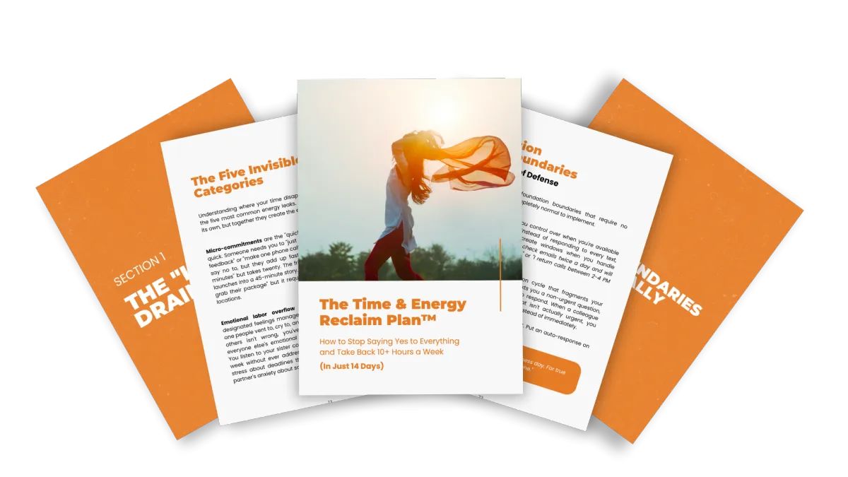 The complete 5 section system to stop time leaks in 14 days, plus 35+ ready to use scripts for saying no without guilt or drama.